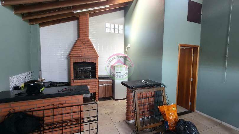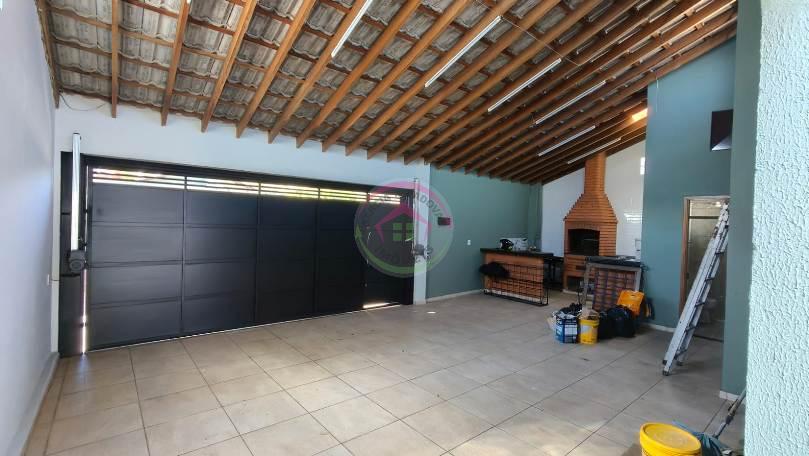 Garagem com área de churrasco e banheiro